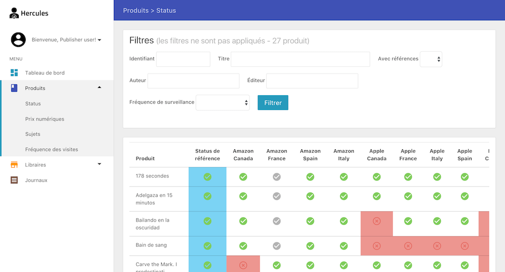 Hercules trouvera l'URL de votre livre sur le site du libraire, l'identifiant propriétaire qui lui a été assigné, et la catégorie dans laquelle il a été mis en avant, de façon à faciliter vos échanges avec chaque libraire.
